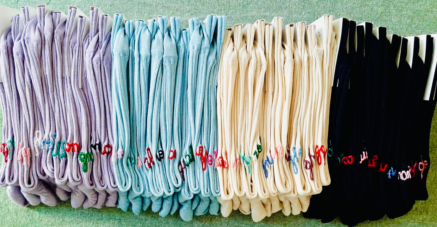 Ogni paio di calze e' realizzato in prezioso filo di Scozia o cotone a coste e ricamato a mano con materiali di alta qualità, che ne garantiscono la durata nel tempo.