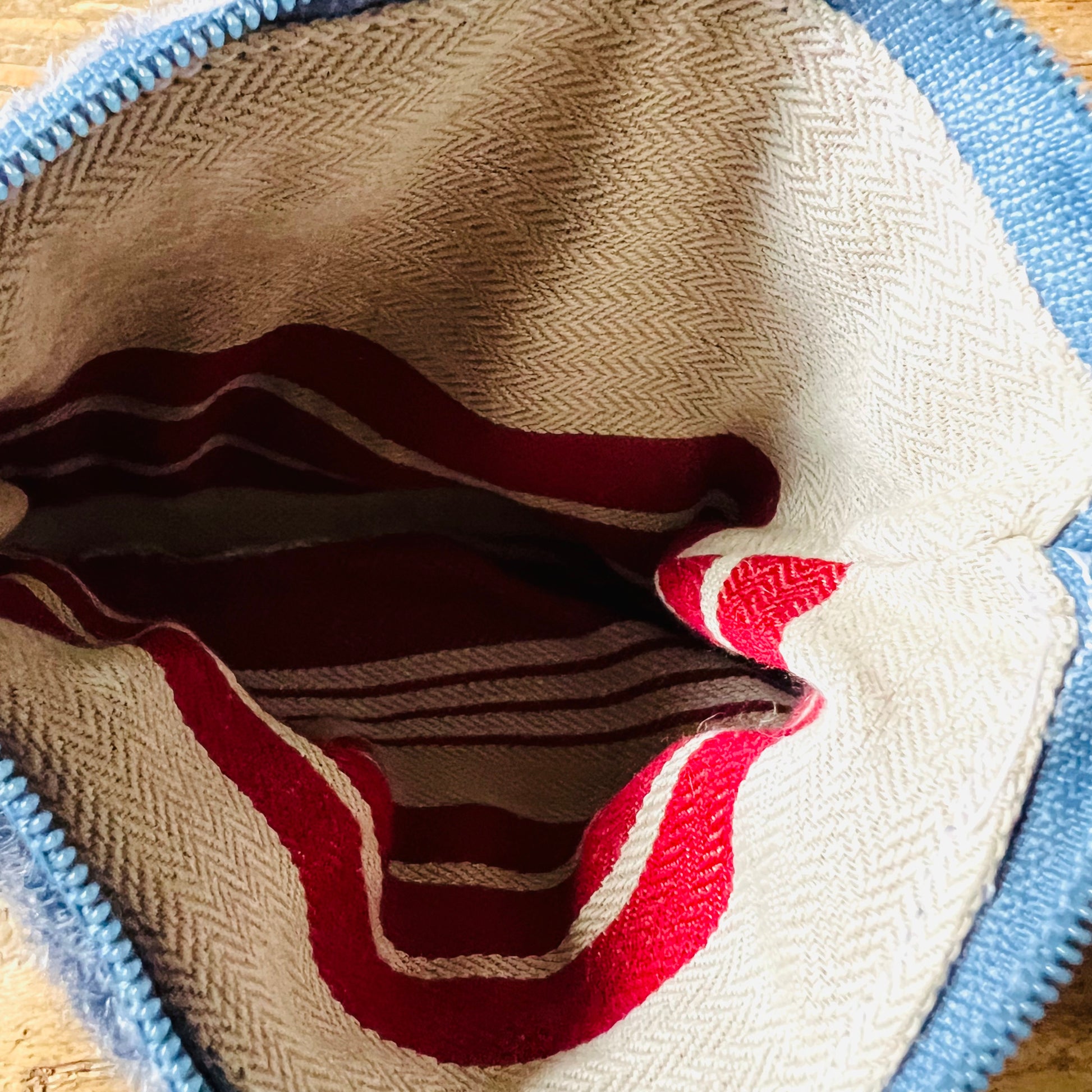 bustina maxi quadri plaid vichy blu "per piccole cose felici" ricamata a mano