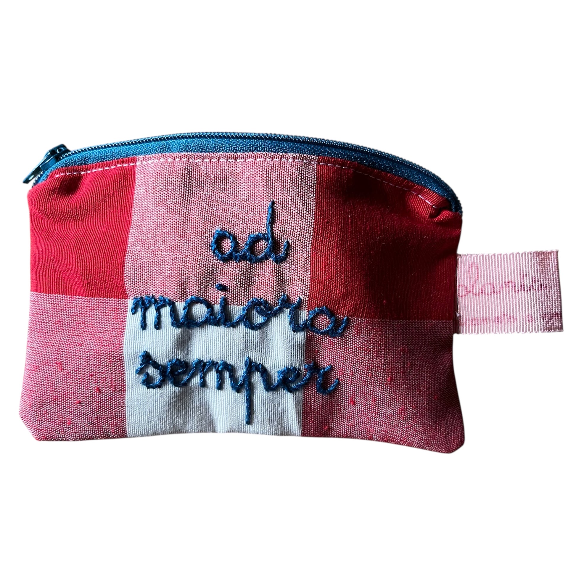 bustina maxi quadri vichy rosso " ad maiora semper" ricamata a mano